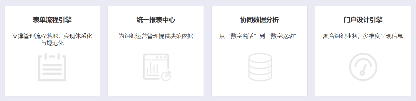 以协同工作为主线、利用二元化工作流,形成组织内高效的协同流程引擎,打通组织中人与人、人与事的工作交流与互动机制,实现管理柔性和刚性的完美结合,从而达到上下管控,有效沟通和高效管理,减少中间成本,实现协同价值最大化。