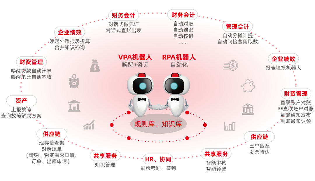 用友NC Cloud 应用人工智能技术(例如:交互式语音、LBS、OCR技术),结合实际业务场景,全新设计VPA工作助手(人机交互、智能问答......)、RPA流程机器人(自动对账、结账、核销、发票验伪、三单匹配、报表填报......),用AI技术引领智能应用新方向,重塑用户新体验。